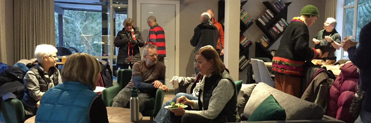 Thirty volunteers braved cold, snow, and wind on February 3 to gather at Sunwolf Resort‘s newly-renovated lodge for our EagleWatch volunteer recognition dinner. Sunwolf hosts this event every year at the close of EagleWatch season so volunteers can share a meal and celebrate.