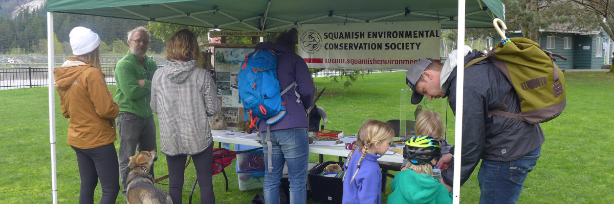 Here are some scenes from the Saturday, April 22nd Earth Day activities hosted by the Squamish Environment Society. The participants in the birding walk were very disappointed to find out that they had just missed sighting a bobcat!