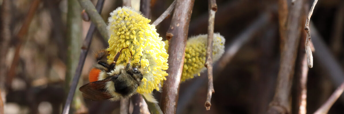 In March we salute our first bumblebees, the queens newly-emerged from their winter hibernation. The success of our bumblebee population depends on the ability of these amazing bees to independently build a nest and raise the first generation of workers. They then must lay successive clutches of eggs until August, when the young hatch as males and new queens. If the queen fails at any point in this cycle, her colony will die. In the fall, the colony will die regardless, but if new queens are hatched, they will pick up the cycle for the next season.