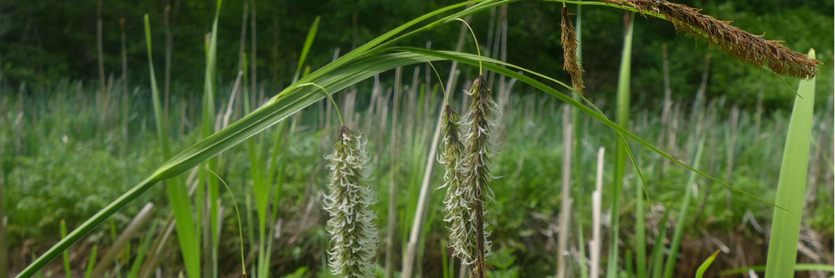 The slough habitat here understandably has estuarine plant species: the water flow is connected to the estuary. The nature trail is in floodplain forest habitat and at present there are carpets of Piggy-Back Plants (Tolmiea menziesii), False Lily of the Valley (Maianthemum dilatatum) and Siberian Miner’s Lettuce (Claytonia sibirica) in flower.