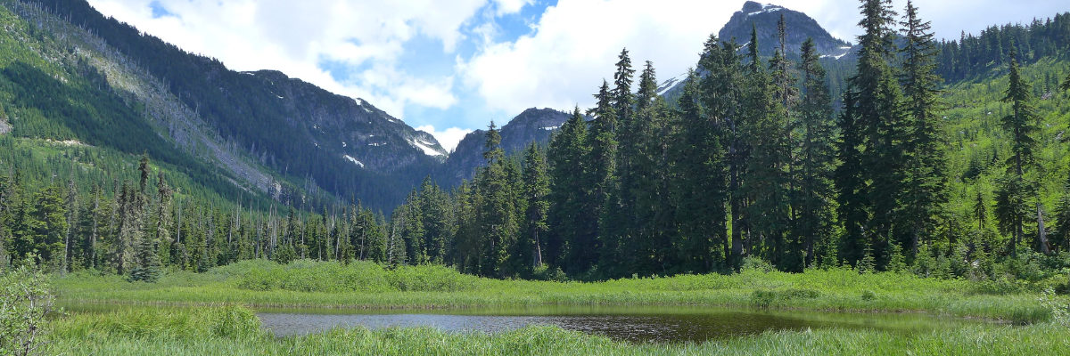 Watersprite Lake, on the SW shoulder of Mamquam Mountain, has of course an outflow creek from the hanging valley. Some distance below where the terrain becomes more level, there is one particularly large wetland at 1178 m elevation in the subalpine. To our knowledge the flora and fauna had never been documented. We made a start (see list).